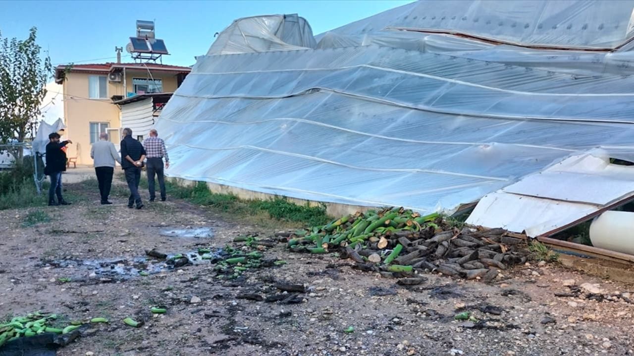 Yavruoğlan ve Gündoğdu mahallelerinde meydana gelen hortumda, 4 seranın demir aksamları kırıldı, çatıları çöktü ve naylon kaplamaları parçalandı.