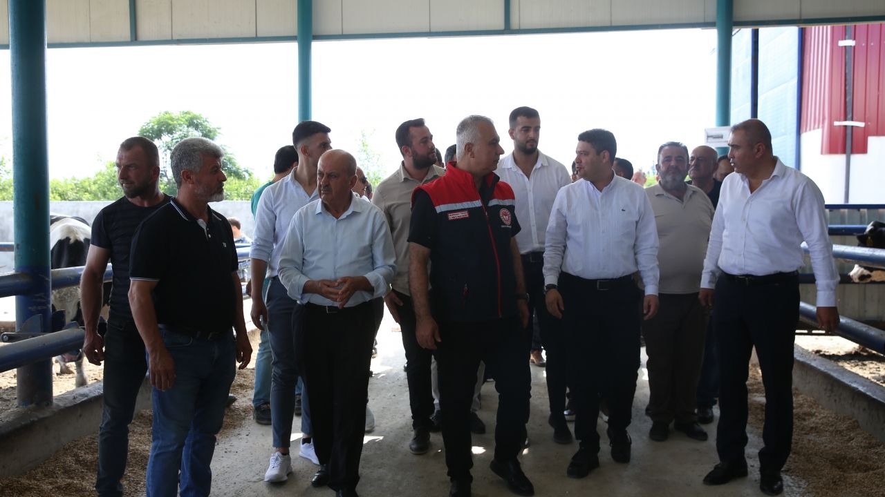 İlk olarak besi çiftliğinin açılışını gerçekleştirilen protokol üyeleri, daha sonra sera temal atma alanında incelemelerde bulundu.