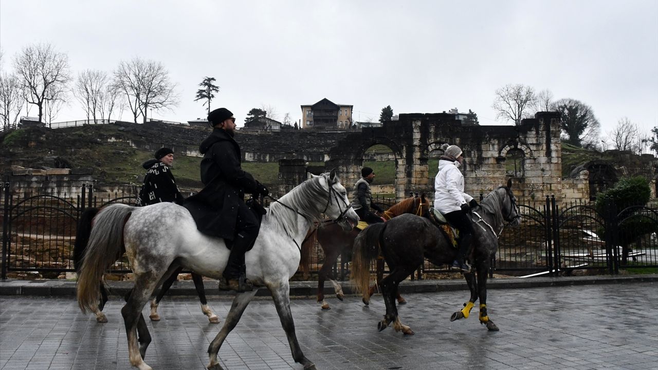 Buradan atlarıyla yola çıkan grup, tarihi Atlı Kapı, Prusias Ad Hypium Antik Kenti ve üniversite bölgesinde turladı.