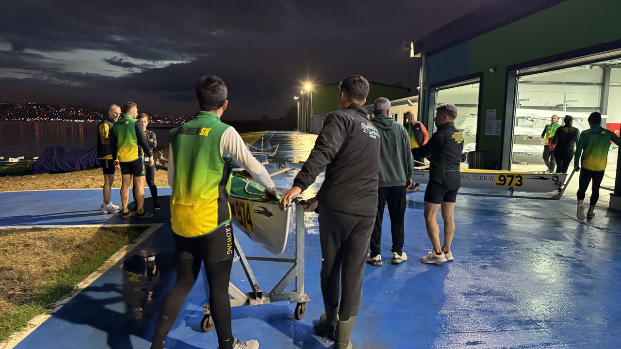 İzmit Körfezi'nde gün doğumunu karşılayarak güne başlayan sporcular, kara çalışmalarını antrenör Ümmet Subaşı nezaretinde tesisin ergometre ve kondisyon merkezinde gerçekleştirdi.