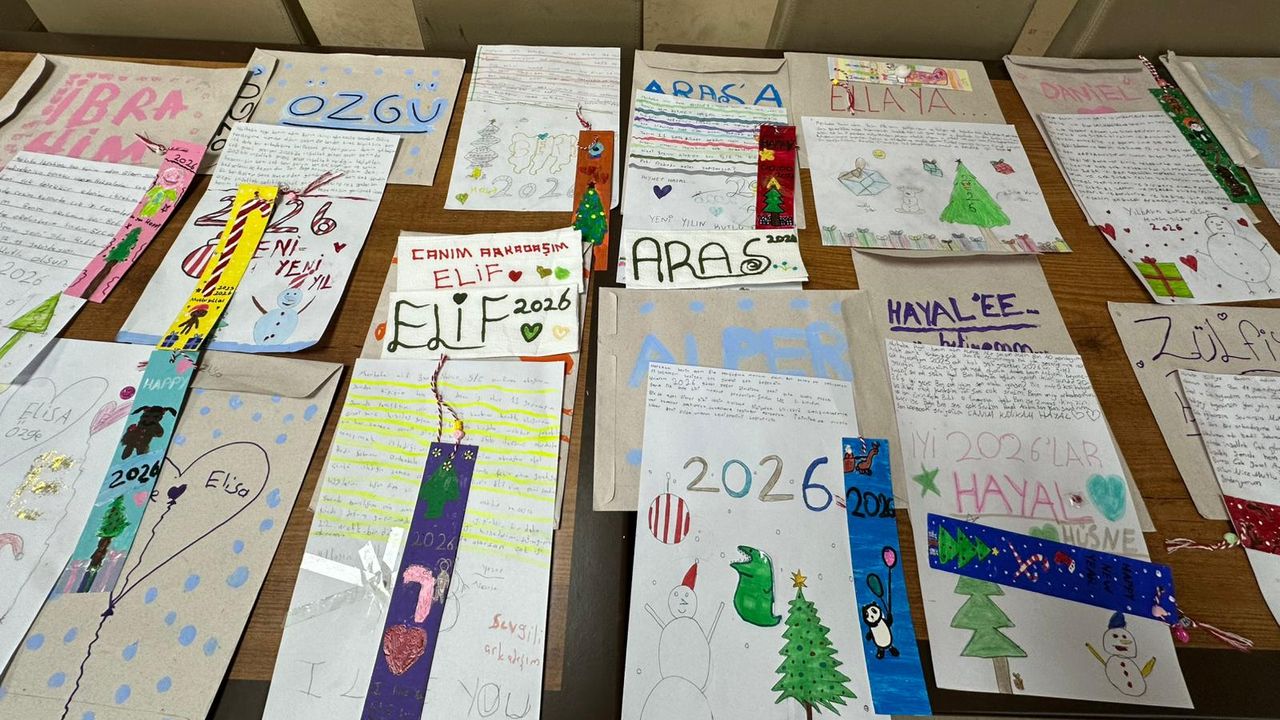 HATAY (AA) - Aydın Gençlik Merkezi öğrencileri, kendi elleriyle hazırladıkları yeni yıl mesajı kartlarını Hatay'daki depremzede akranlarına ulaştırdı.