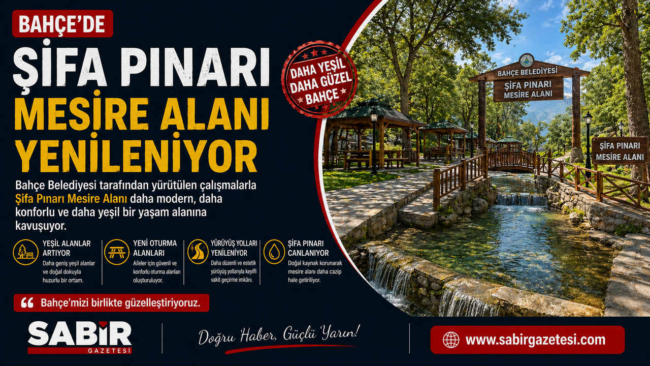 Bahçe Belediyesi tarafından yürütülen çalışmalar kapsamında Şifa Pınarı Mesire Alanı yenilenerek vatandaşların kullanımına daha uygun hale getiriliyor.