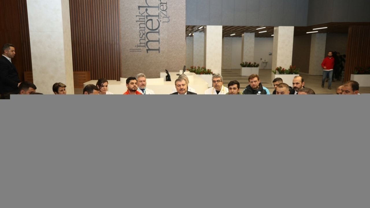 HATAY (AA) - Sağlık Bakanı Fahrettin Koca, sağlık çalışanları ve 6 Şubat depremlerinin 261. saatinde enkazdan kurtarılan 2 afetzedeyle bir araya geldi.