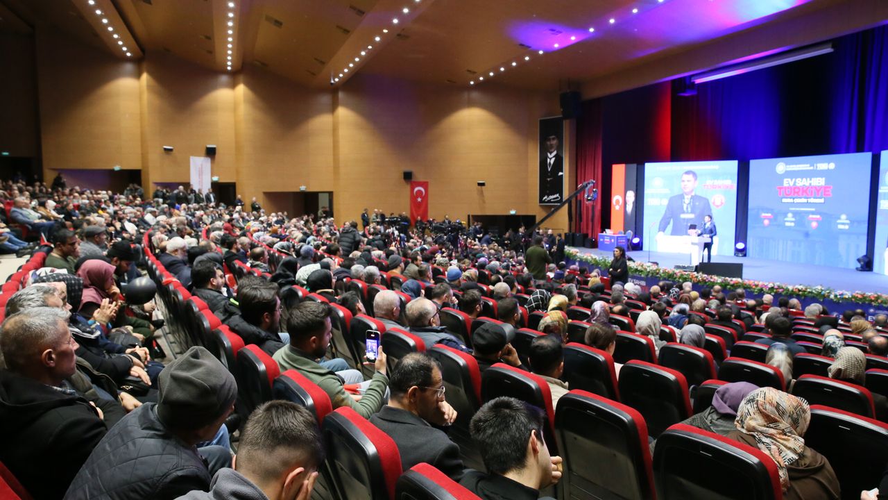 'Milletimizle omuz omuza, asrın dayanışmasıyla asrın inşasını mayaladık. Tek derdi devlet, tek derdi millet, tek derdi afetzede kardeşleri olan 200 bin mimar, mühendis ve işçimizle gece gündüz çalıştık. Rekor bir hızla saatte 23, günde 550 konut ürettik. Hiçbir ülkenin kolay kolay altından kalkamayacağı büyüklükte, 110 bin kilometrekarelik bir alandaki yıkımı iki yıl gibi bir sürede ayağa kaldırdık. Parklarıyla, kent meydanlarıyla, millet bahçeleriyle, okullarıyla, camileriyle, alt ve üstyapısıyla birlikte Avrupa ülkesi büyüklüğünde bir alanı yeniden inşa ettik. Bu büyük mücadelenin sonunda geçtiğimiz Aralık ayında sayın Cumhurbaşkanımızın teşrifleriyle Hatay'da tam 455 bin yeni yuvamızı kardeşlerimize teslim ettik. Yarım milyon konutla 2 milyon vatandaşımızı yeni yuvalarına kavuşturduk. Deprem bölgemizde verdiğimiz bu büyük mücadeleyi, Türk milletinin yeniden diriliş hareketine, tarihimizin en büyük inşa seferberliğine dönüştürdük. Alnımızın akıyla, verdiğimiz her sözü tutarak bırakın deprem bölgesini eski haline getirmeyi eskisinden daha güçlü, daha sağlam modern şehirler haline getirdik. İşte bunun en somut örneklerinden biri de Kahramanmaraş'tır. Kahramanmaraş'ta 73 bin bağımsız bölümü hak sahibi kardeşlerimize teslim ettik. Ecdat yadigarı eserlerimize sahip çıkarak tarihi Kapalı Çarşımızı yeniden canlandırdık, Demirciler Çarşısı'na Toptancılar Sitesinden Kasaplar Çarşımıza kadar kentin ticari ve kültürel damarlarına yeniden hayat veriyoruz.'