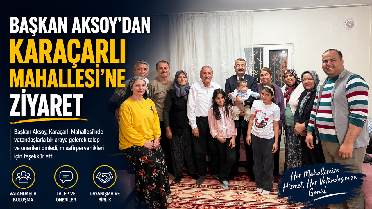 Ziyaret sonrası açıklamada bulunan Başkan Aksoy, “Karaçarlı Mahallemizden kıymetli büyüğümüz Hüseyin Toy amcamız ve değerli ailesinin misafiri olduk. Sıcak çay eşliğinde samimi bir hasbihal gerçekleştirdik, gönül köprülerimizi daha da güçlendirdik. Nazik misafirperverlikleri ve güzel sohbetleri için kendilerine gönülden teşekkür ediyorum. Allah birlik ve beraberliğimizi daim eylesin” ifadelerini kullandı.