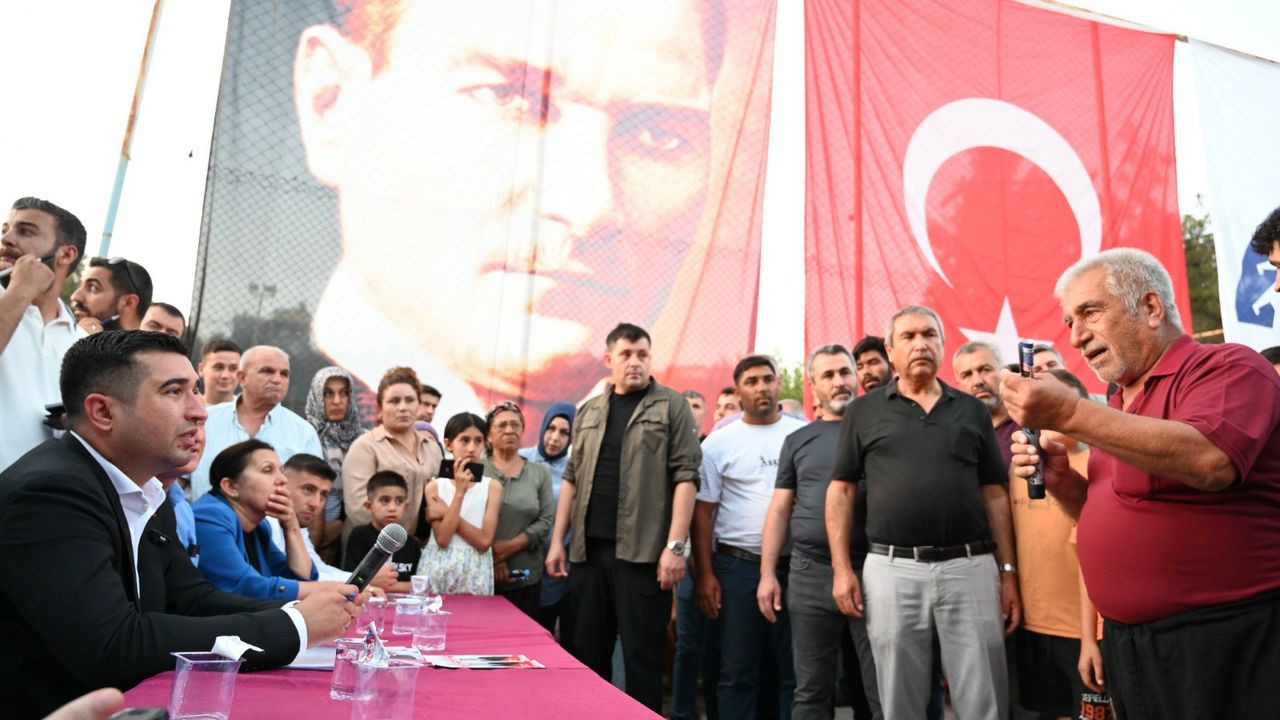 Karatepe Yolu üzerindeki eski halı saha civarında düzenlenen toplantıya, CHP İlçe Başkanı Enver Eker, Mahalle Muhtarı İlyas Semercioğlu, belediye başkan yardımcıları, meclis üyeleri, birim müdürleri ve çok sayıda mahalle sakini katıldı.