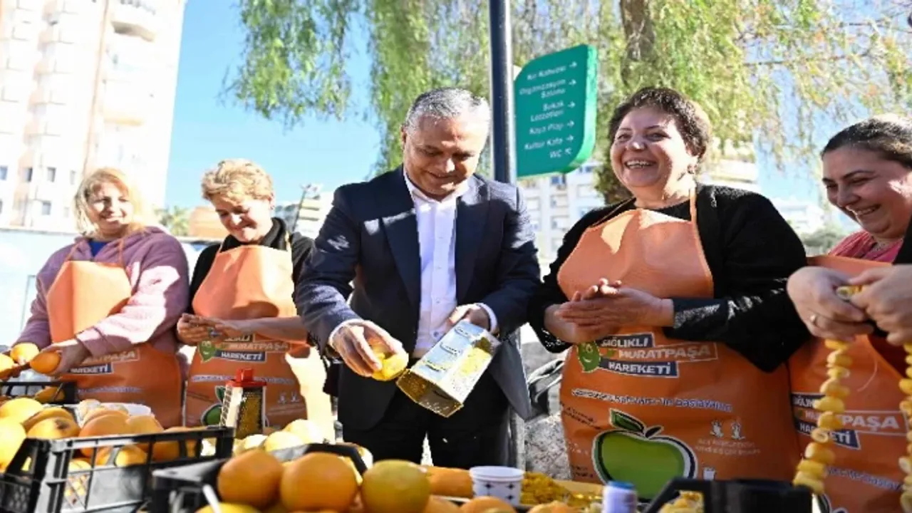 Muratpaşa Belediye Başkanı Ümit Uysal, Antalya’ya yerleşen depremzede kadınlarla birlikte yürütülen Dramayla Yeni Hayata Uyum Sağla projesi kapsamında düzenlenen kermeste kadınlarla turunçları rendeledi, kabuklarını ipe dizdi ve turunç reçeli hazırladı.