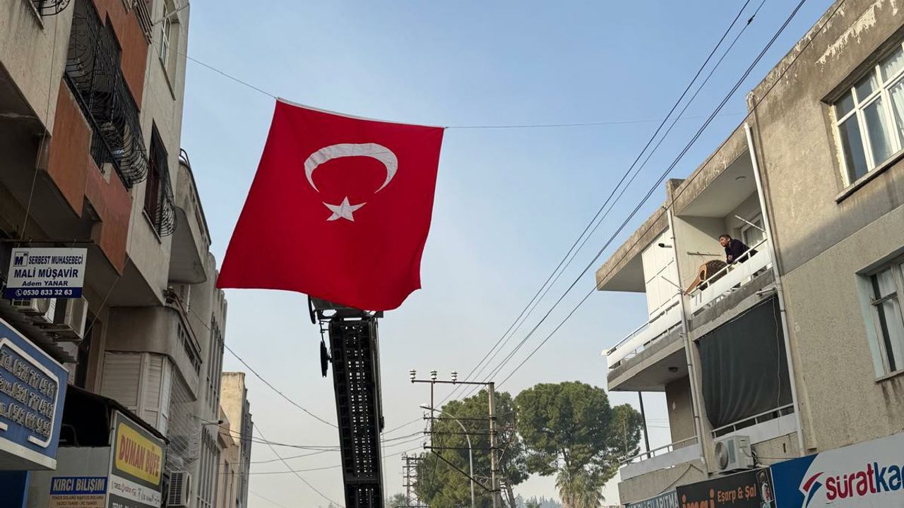 Kadirli Muhtarlar Derneği, şanlı Türk bayrağına yapılan saldırıyı lanetlemek amacıyla Dere Mahallesi’nde Ay Yıldızlı Türk bayrağı astı.