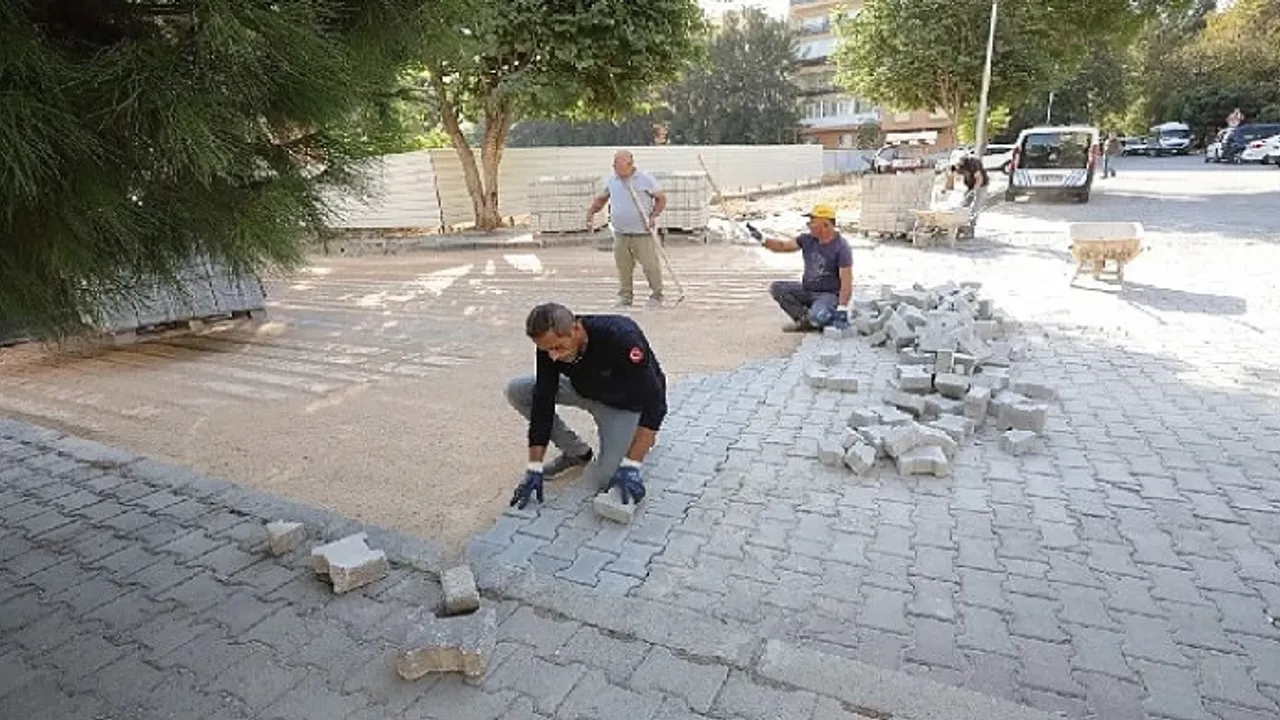 ve bordür döşedi. Başkan Serdar Sandal, “İzmir’in kalbi Bayraklı, sadece kültür-sanatta,