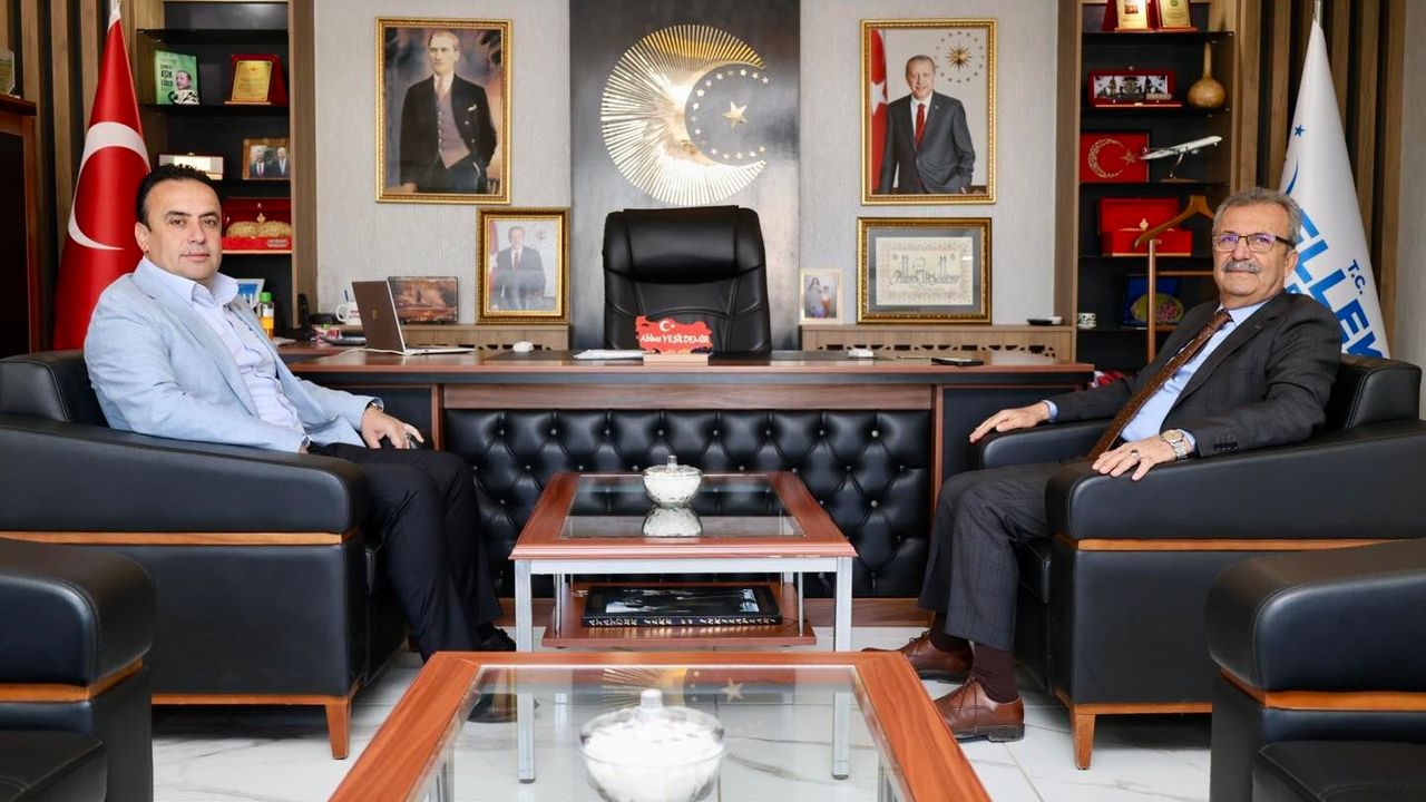 Ellek Belediye Başkanı Abbas Yeşildemir, Böcekli Belediye Başkanı İbrahim Çerçi’yi belediye binasında misafir etti.