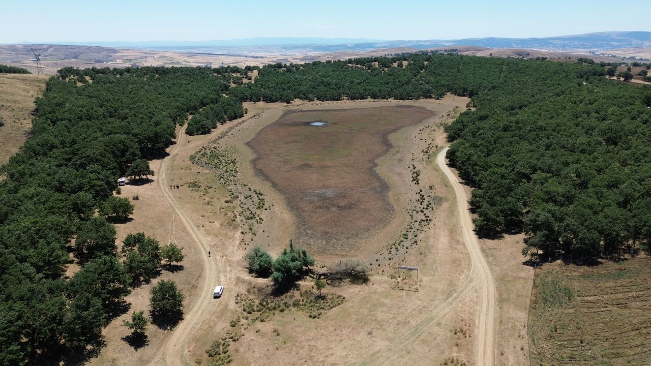BİLECİK (AA) - MUHSİN ARSLAN - Bilecik'in Söğüt ilçesinde doğal yollarla oluşan gölet, iklim değişikliğine bağlı kuraklık nedeniyle neredeyse yok olma noktasına geldi.
