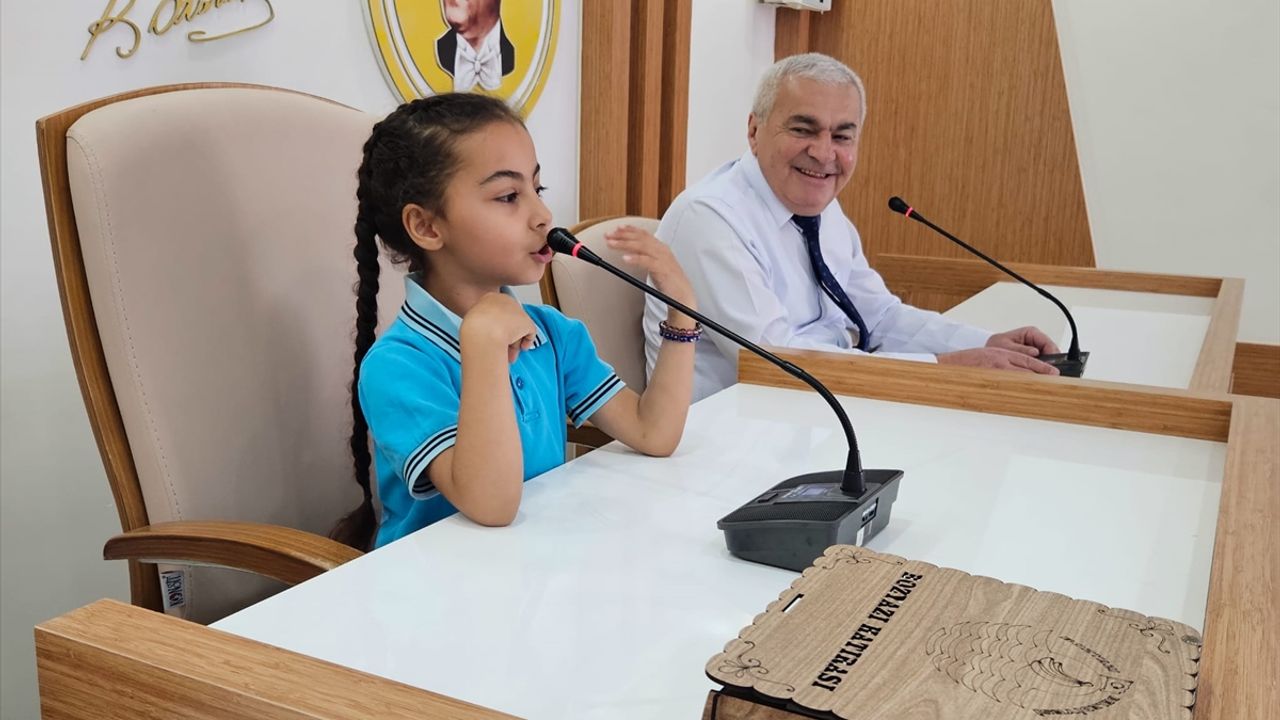 Çetinkaya, bayram dolayısıyla makam ve Belediye Meclis Salonu'ndaki koltuklarını öğrencilere devretti.