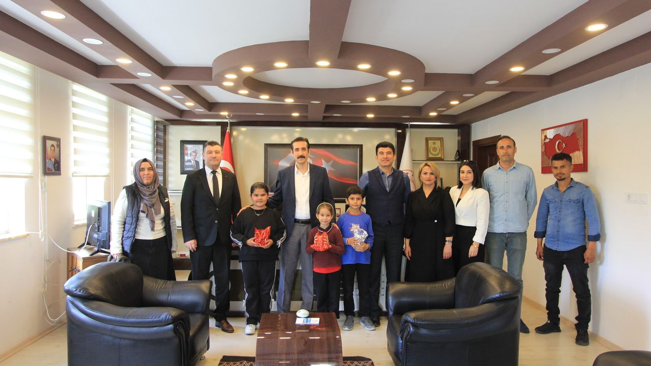 Kaymakam Tuncay Topsakaloğlu, kitap okuma ve afiş yarışmalarında başarı gösteren öğrenciler ile öğretmenlerini makamında kabul etti.