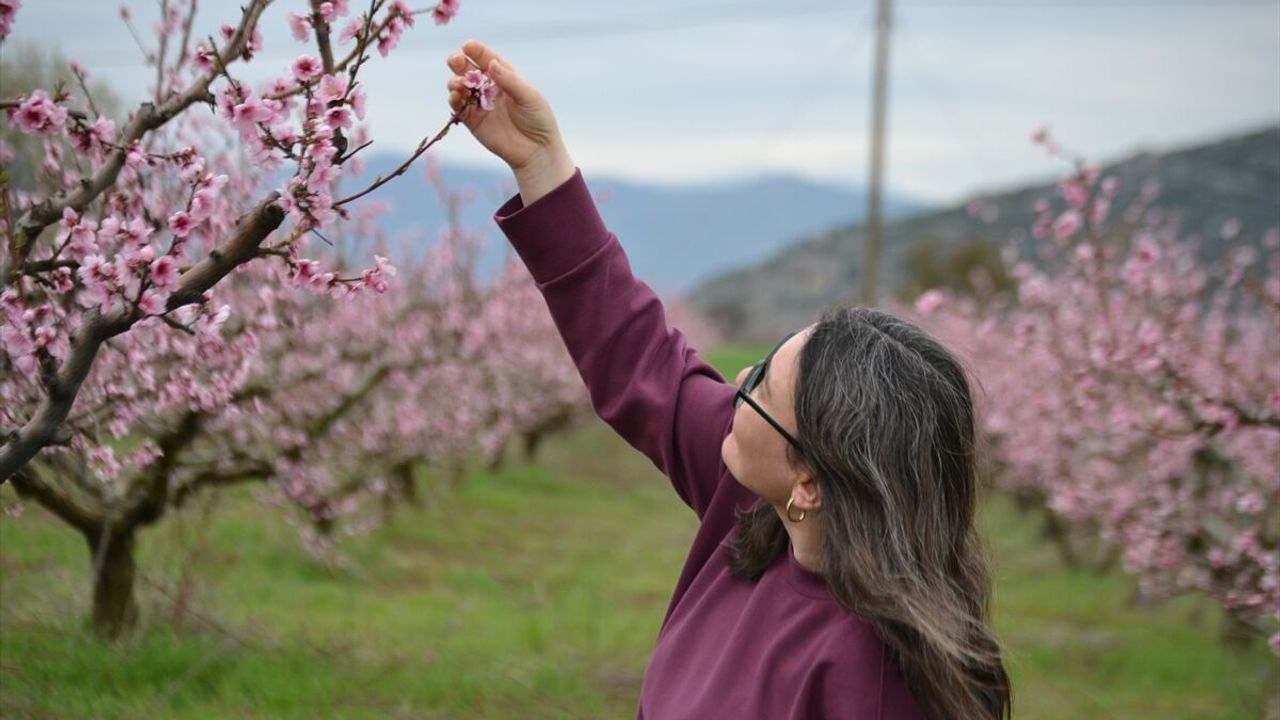 Şeftali ağaçlarının çiçekleri, doğaseverlere görsel bir şölen sunarken, bölgeyi ziyaret edenlerin de ilgisini çekiyor.