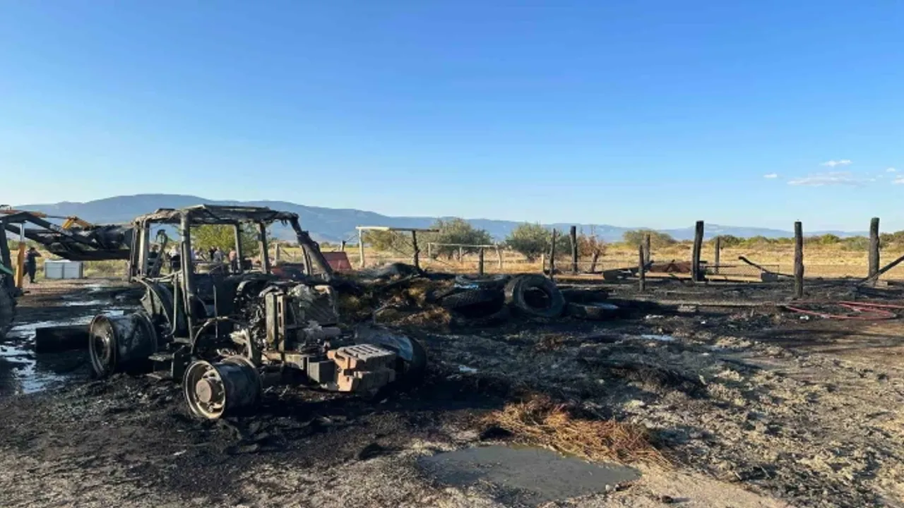 Yangında samanlıktan bulunan 20 saman balyası ve bir traktör küle dönerken, 1 köpek ve 1 kuzu yanarak telef oldu. Olayla ilgili jandarma ekipleri tarafından inceleme başlatıldı.