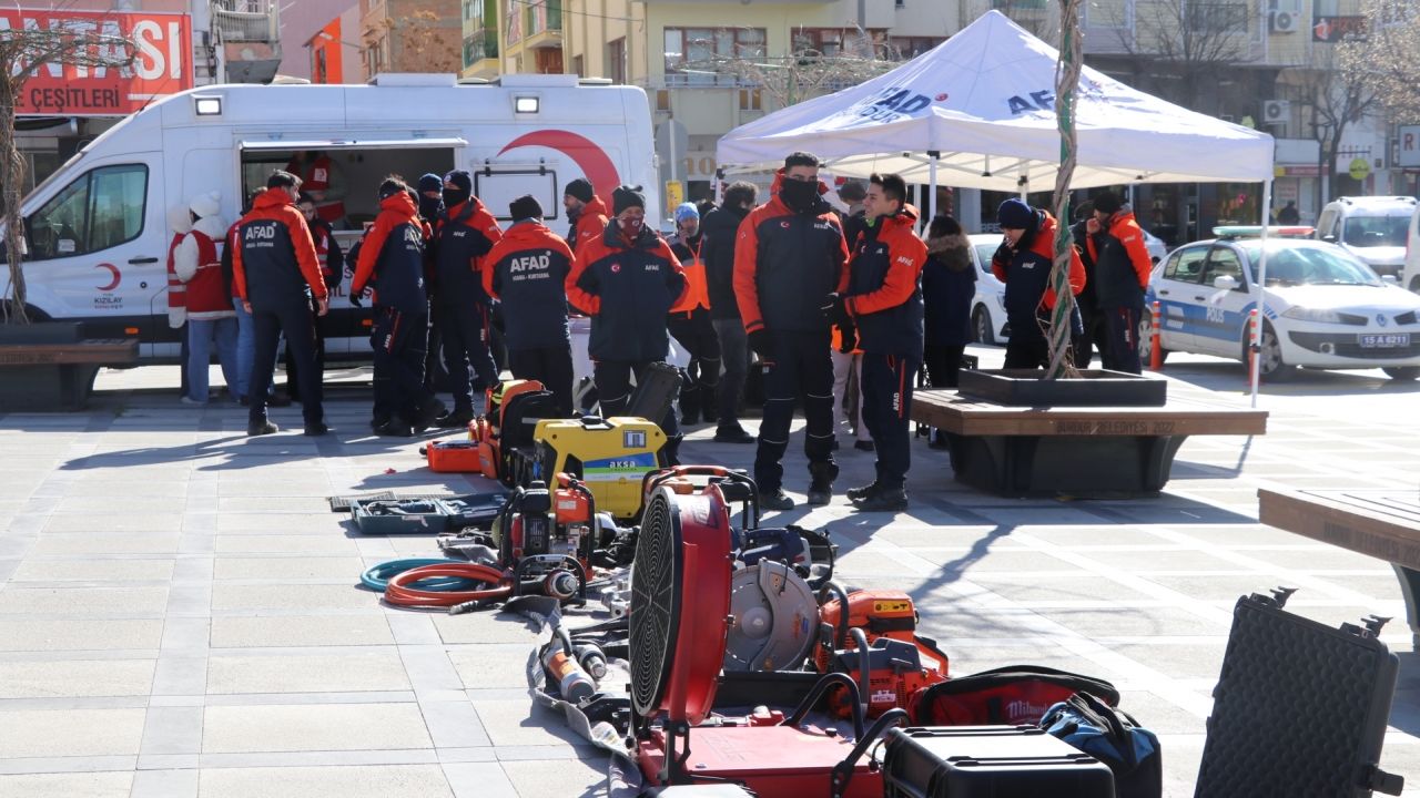 İl Afet ve Acil Durum Müdürlüğünce Cumhuriyet Meydanı'nda 6 Şubat depremlerine ilişkin fotoğraf ve acil müdahale sırasında kullanılacak ekipman sergisi açıldı.