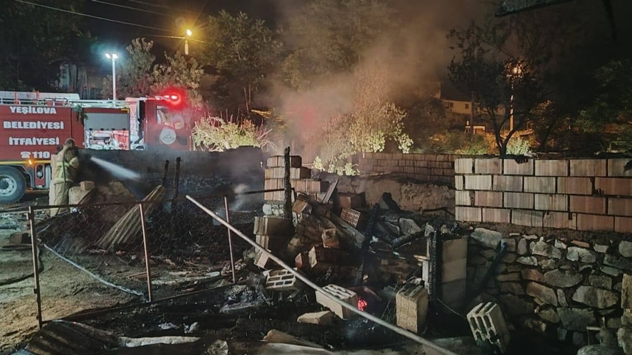 İtfaiye ekiplerinin müdahalesiyle söndürülen yangında 3 koyun, 7 kuzu telef oldu.