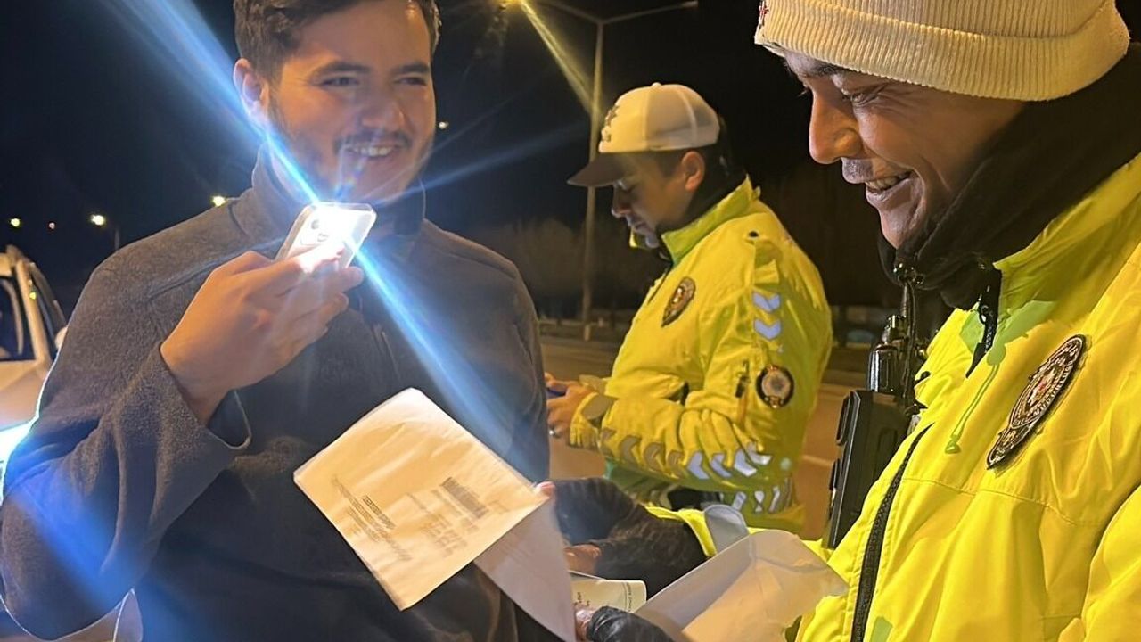 Olay, kentte gece saatlerinde kurulan uygulama noktasında yaşandı. Kontrol için durdurulan sürücüye ekipler tarafından ehliyet sorulunca, genç sürücü torpidoda taşıdığı zarfı uzatarak “ehliyetimi açtırmak istiyorum” dedi. Trafik polislerinin zarfı açmasının ardından yapılan kontrolle birlikte genç sürücünün heyecanı da kameralara yansıdı.
