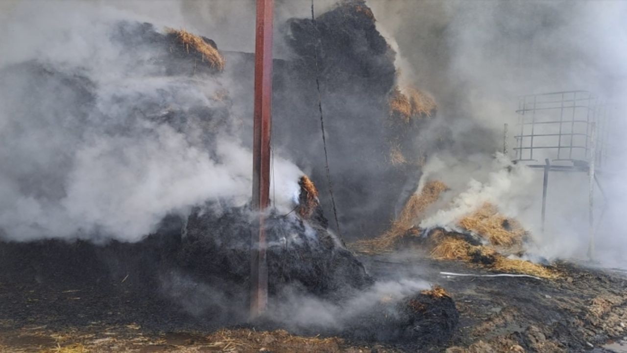 İtfaiyenin ve iş makinelerinin müdahalesiyle söndürülen yangında, yaklaşık 15 ton saman balyasının zarar gördüğü belirtildi.