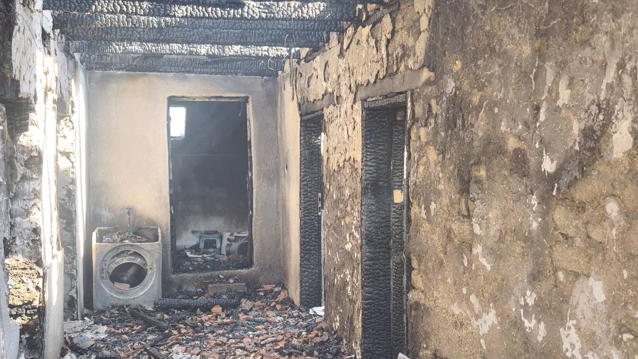 Ekiplerin müdahalesiyle söndürülen yangında ev kullanılmaz hale geldi.