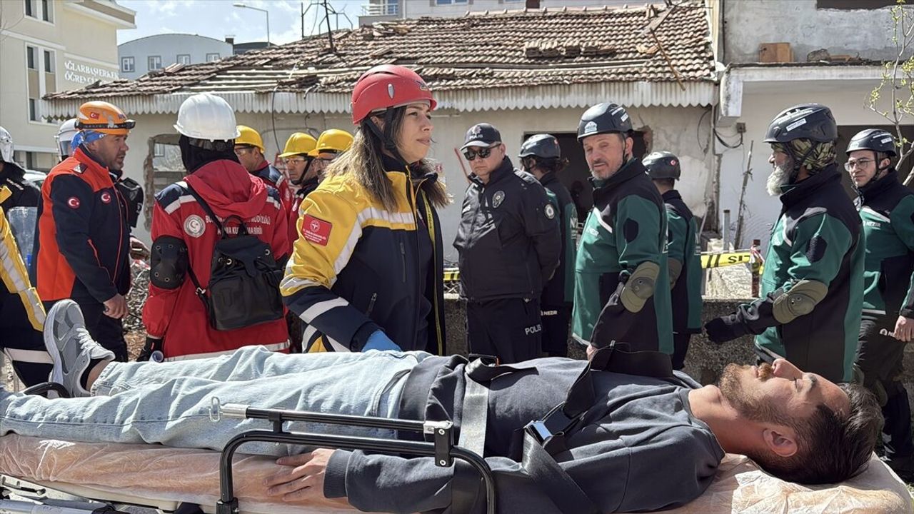 Ekipler, senaryo gereği enkazdan çıkardıkları yaralıları ambulanslara hastaneye kaldırdı, hayatını kaybeden kişi ise cenaze aracına taşındı.