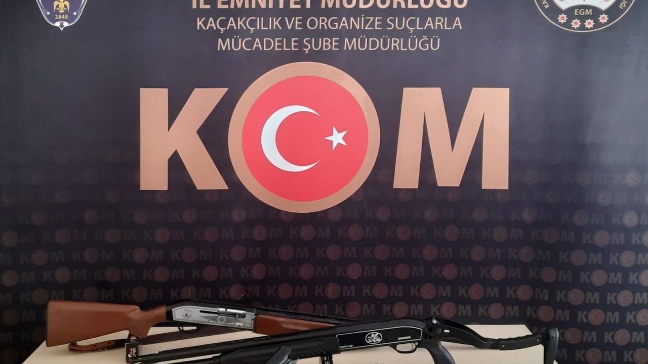Şüphelilerin ikametlerinde yapılan aramalarda, ruhsatsız tabanca, ruhsatsız av tüfeği, ruhsatsız pompalı tüfek, bıçak, kurusıkı tabanca gövdesi, tabanca sürgüsü, 56 tabanca fişeği, 58 farklı ebatlarda av tüfeği kartuşu, 79 sikke, 27 tarihi eser olduğu değerlendirilen obje ele geçirildi.