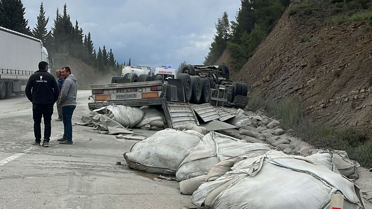 Bayram S. (49) idaresindeki 32 HY 262 plakalı tır Isparta-Antalya karayolu Çamlık Köyünde şarampole devrildi.