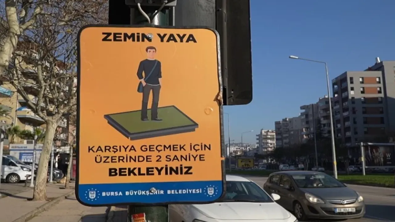 İnsanların temas etmesi nedeniyle sağlık bakımından risk oluşturan trafik ışıklarındaki yaya butonlarının yerine kullanılacak farklı bir uygulama için çalışma yapan Bursa Büyükşehir Belediyesi Ulaşım Daire Başkanlığı teknik ekipleri "Zemin Yaya" adlı bir uygulama geliştirildi. İlk olarak Nilüfer ilçesi Özlüce Mahallesi Ahmet Taner Kışlalı Bulvarı'nda başlatılan uygulamada, trafik ışığı bulunan bir yaya geçidinin her iki tarafına "Karşıya geçmek için üzerinde bekleyiniz" yazılı sarı ve siyah renkte platform yerleştirildi. Üzerinde durulunca aktifleşen sistem 2 saniye içinde yayayı algılıyor ve sesli uyarıların ardından yayalar için yeşil ışık yanıyor. Görme engellilerin beyaz bastonla kaldırımlardaki sarı renkli taban takip taşları sayesinde ulaşabildiği, bebek arabası kullanan ya da elleri dolu olan yayaların da hayatını kolaylaştıran platform, kentin farklı noktalarında da yaygınlaştırılmaya başlandı.