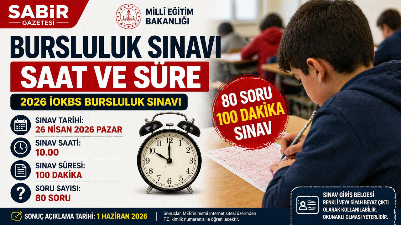 2026 yılı İOKBS bursluluk sınavı, 26 Nisan 2026 Pazar günü saat 10.00’da başlayacak. Millî Eğitim Bakanlığı tarafından düzenlenen sınav, Türkiye genelinde aynı anda uygulanacak.