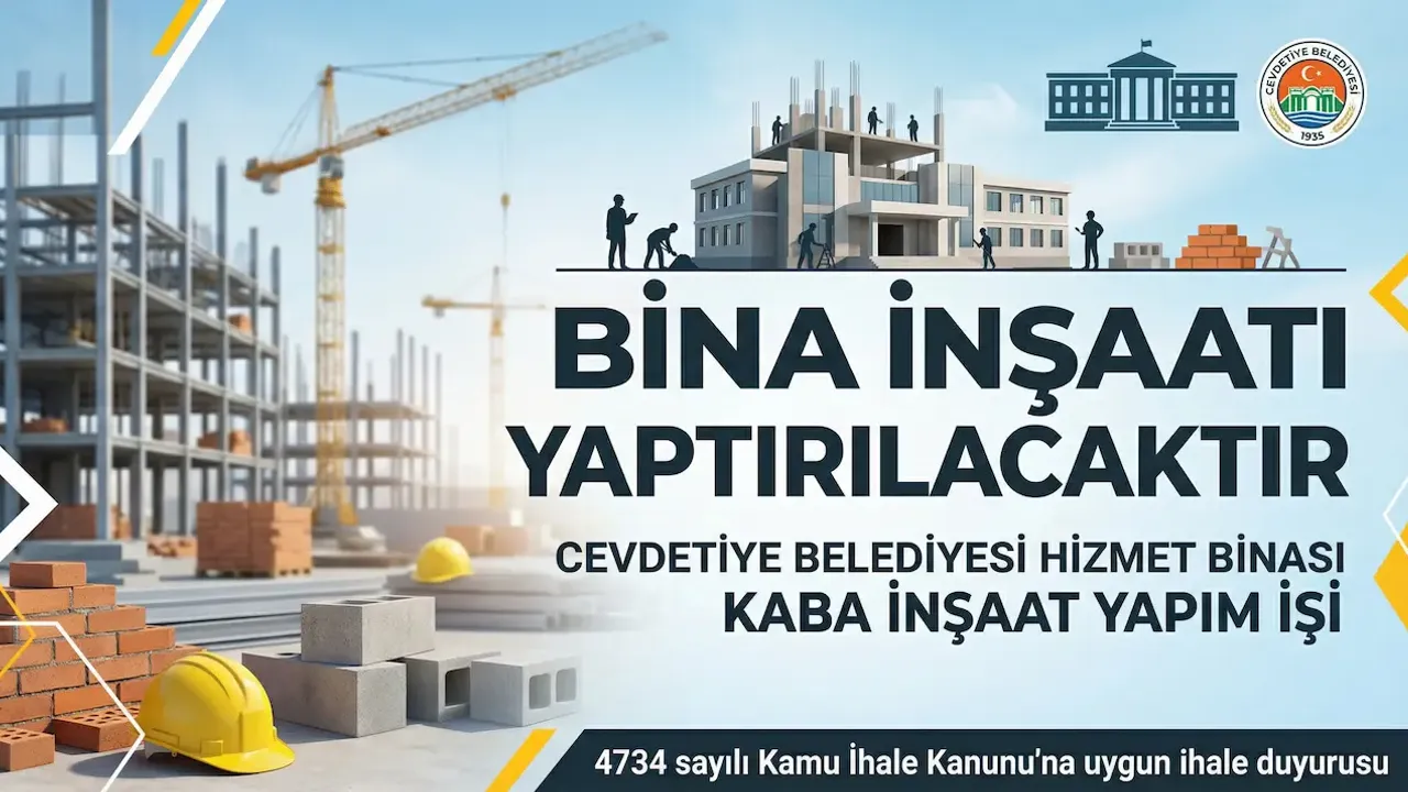 Cevdetiye Belediyesi, yeni hizmet binasının kaba inşaat yapım işi için açık ihale usulü ile ihaleye çıkıldığını duyurdu. 4734 sayılı Kamu İhale Kanunu kapsamında yapılacak ihale, elektronik ortamda EKAP üzerinden teklif kabul edecek.