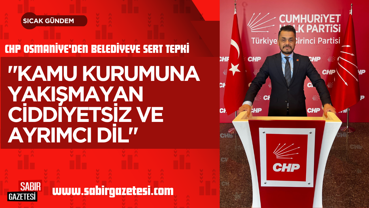 Cumhuriyet Halk Partisi (CHP) Osmaniye İl Başkanı Mutlu Yavuzer, Osmaniye Belediyesi adına yayımlanan ve "Dezenformasyon Önleme Birimi" imzası taşıyan bir açıklamaya sert tepki gösterdi. Yavuzer, söz konusu açıklamada kullanılan üslubun ve ifadelerin bir kamu kurumuna yakışmayacak derecede ciddiyetsiz ve ayrımcı olduğunu belirten bir kamuoyu duyurusu yayımladı.