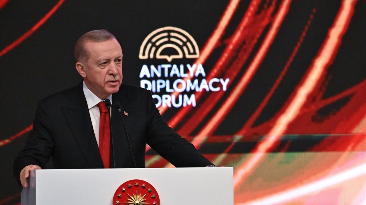 Erdoğan, NEST Kongre Merkezi'nde düzenlenen Antalya Diplomasi Forumu'nun resmi açılışında yaptığı konuşmada, Uluslararası Adalet Divanının, İsrail'in soykırımı önlemesi yönünde aldığı ihtiyati tedbir kararı ortada olmasına rağmen, Netanyahu yönetiminin işgal, yıkım ve katliam politikalarını dün olduğu gibi pervasızca sürdürebildiğini anlattı.