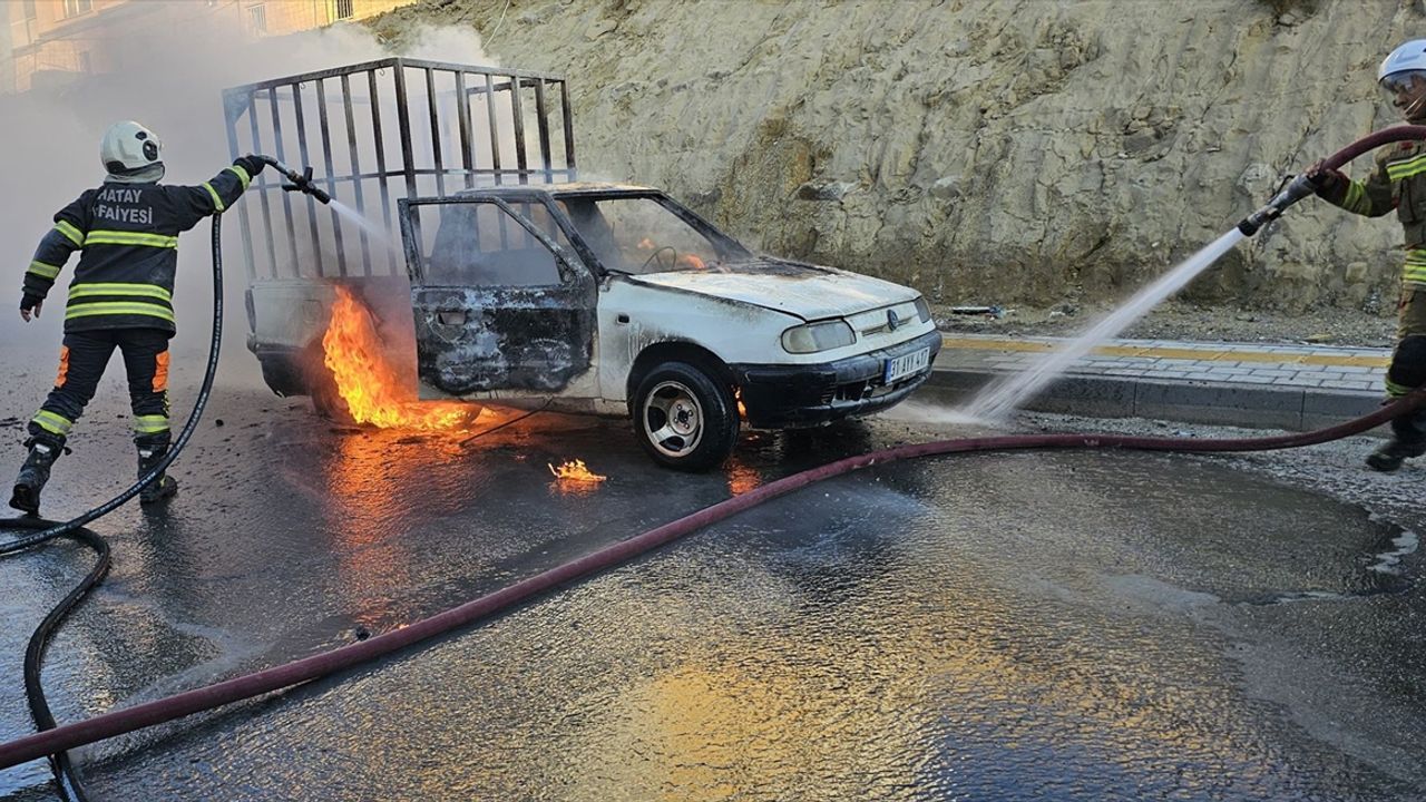 Ekiplerin müdahalesiyle söndürülen yangında araçta hasar oluştu.