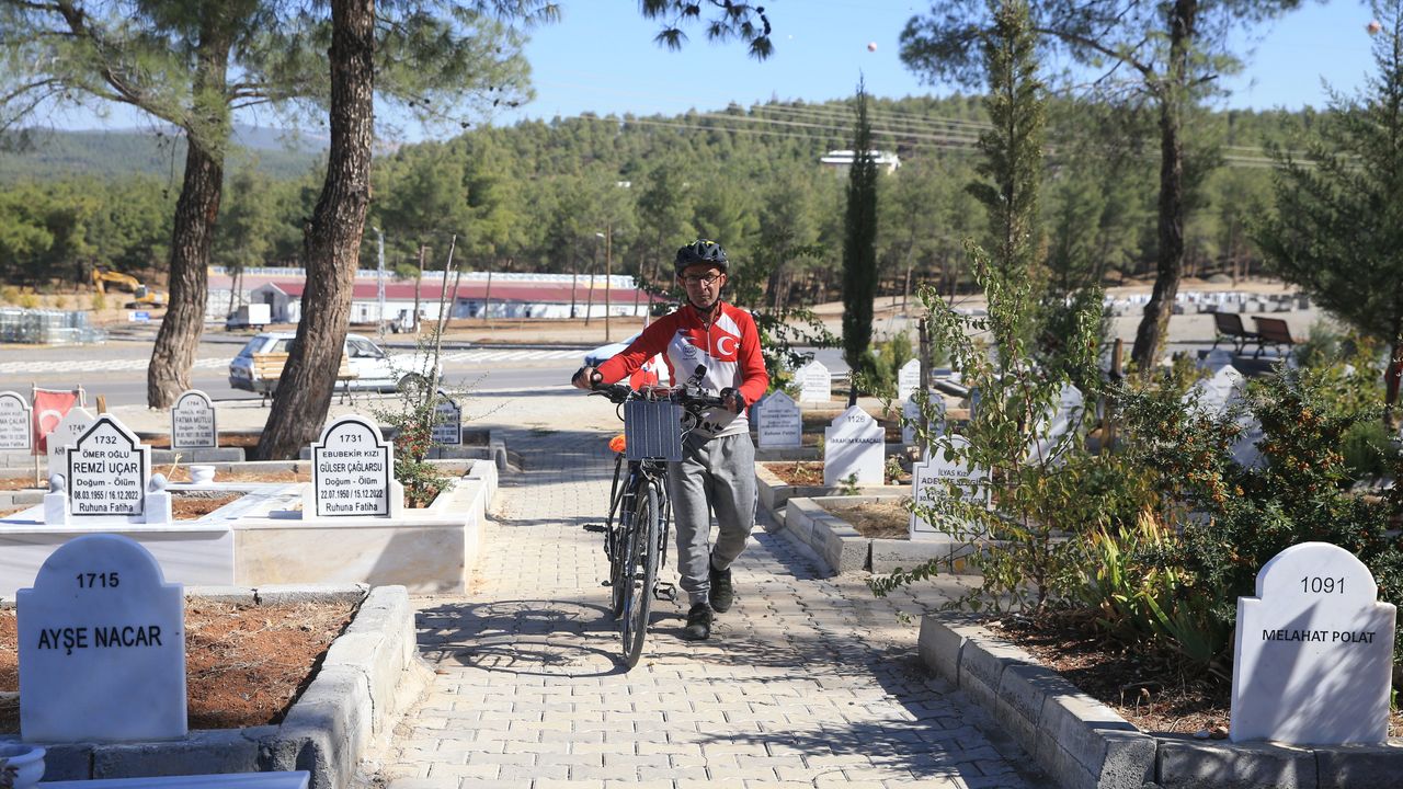 KAHRAMANMARAŞ (AA) - İzmir'de yaşayan Orhan Kotluk, deprem farkındalığı oluşturmak ve deprem şehitlerini anmak amacıyla başladığı bisiklet yolculuğunu, 6 Şubat 2023 depremlerinin merkez üssü Kahramanmaraş'ta tamamladı.