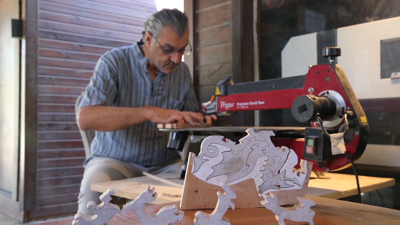 Grafik tasarım işiyle uğraşırken 2009'da tanıştığı ahşap işleme sanatında zamanla ustalaşan 55 yaşındaki Demirel, yapbozlarını profesyonel ortamda yapmak için Antakya ilçesi Maşuklu Mahallesi'nde atölye kurdu.