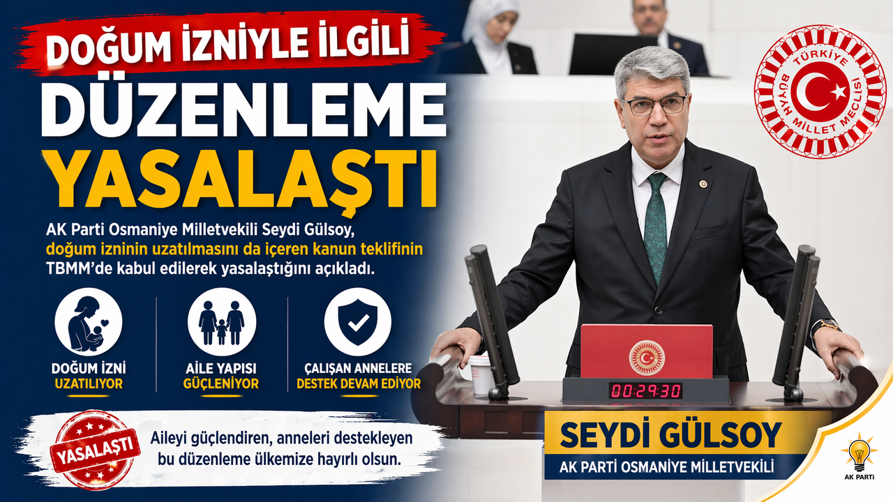 AK Parti Osmaniye Milletvekili Seydi Gülsoy, Türkiye Büyük Millet Meclisi Genel Kurulu’nda görüşülen “Sosyal Hizmetler Kanunu ve Bazı Kanunlarda Değişiklik Yapılmasına Dair Kanun Teklifi”nin kabul edilerek yasalaştığını duyurdu.