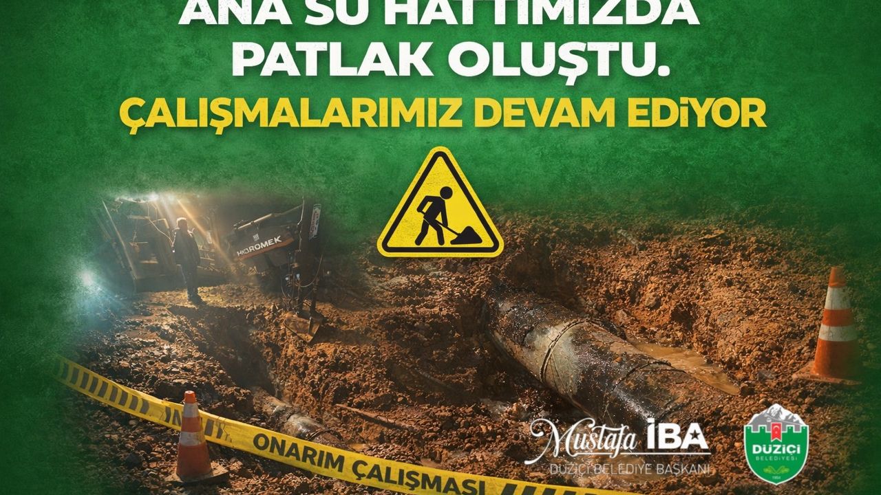 Düziçi Belediyesi, ana su hattında meydana gelen arıza nedeniyle ilçenin kısmi bir bölümünde geçici su kesintisi yaşandığını duyurdu.