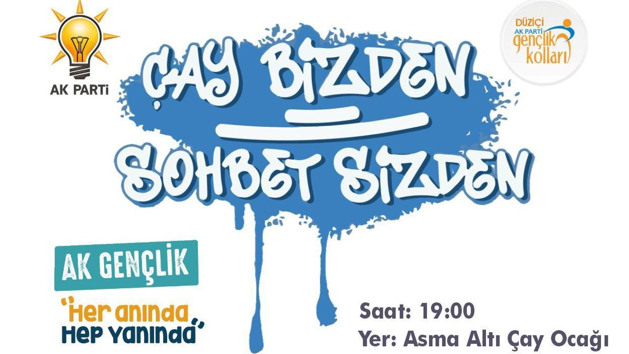 Düziçi Gençlik Kolları, gençleri bir araya getirecek özel bir etkinlik düzenliyor. “Çay Bizden, Sohbet Sizden” başlıklı program, gençlerin fikirlerini paylaşacağı, hayallerini konuşacağı ve enerjilerini birleştireceği bir ortam sunuyor.