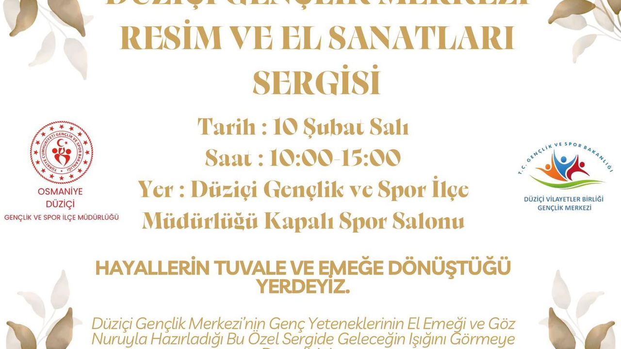 Düziçi Gençlik Merkezi, gençlerin sanatsal yeteneklerini ve üretkenliğini sergileyecek özel bir etkinliğe imza atıyor. Resim ve El Sanatları Sergisi, 10 Şubat Salı günü saat 10.00 ile 15.00 arasında Düziçi Gençlik ve Spor İlçe Müdürlüğü Kapalı Spor Salonu’nda sanatseverlerle buluşacak.