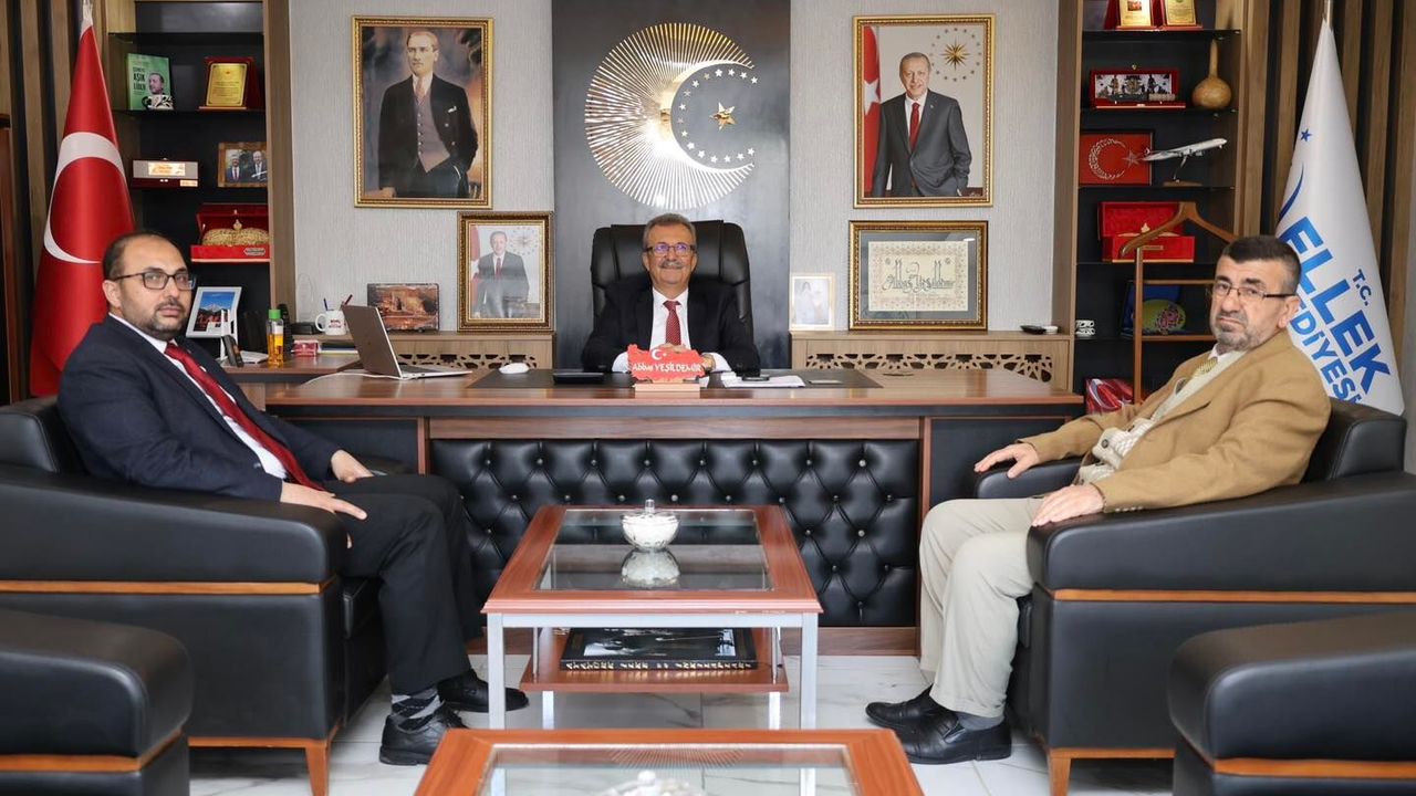 Düziçi İlçe Müftüsü Mehmet Güneş ve Şube Müdürü Ahmet Kurt, Ellek Belediyesi’ni ziyaret ederek Başkan Abbas Yeşildemir ile bir araya geldi. Gerçekleşen görüşmede, ilçe genelindeki çalışmalar ve kurumlar arası iş birliği konuları ele alındı.