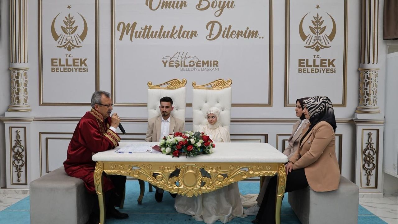 Osmaniye’nin Düziçi ilçesine bağlı Ellek Belde Belediye Başkanı Abbas Yeşildemir, belediye düğün salonunda gerçekleştirilen nikah törenine katılarak genç çiftin mutluluğuna ortak oldu.