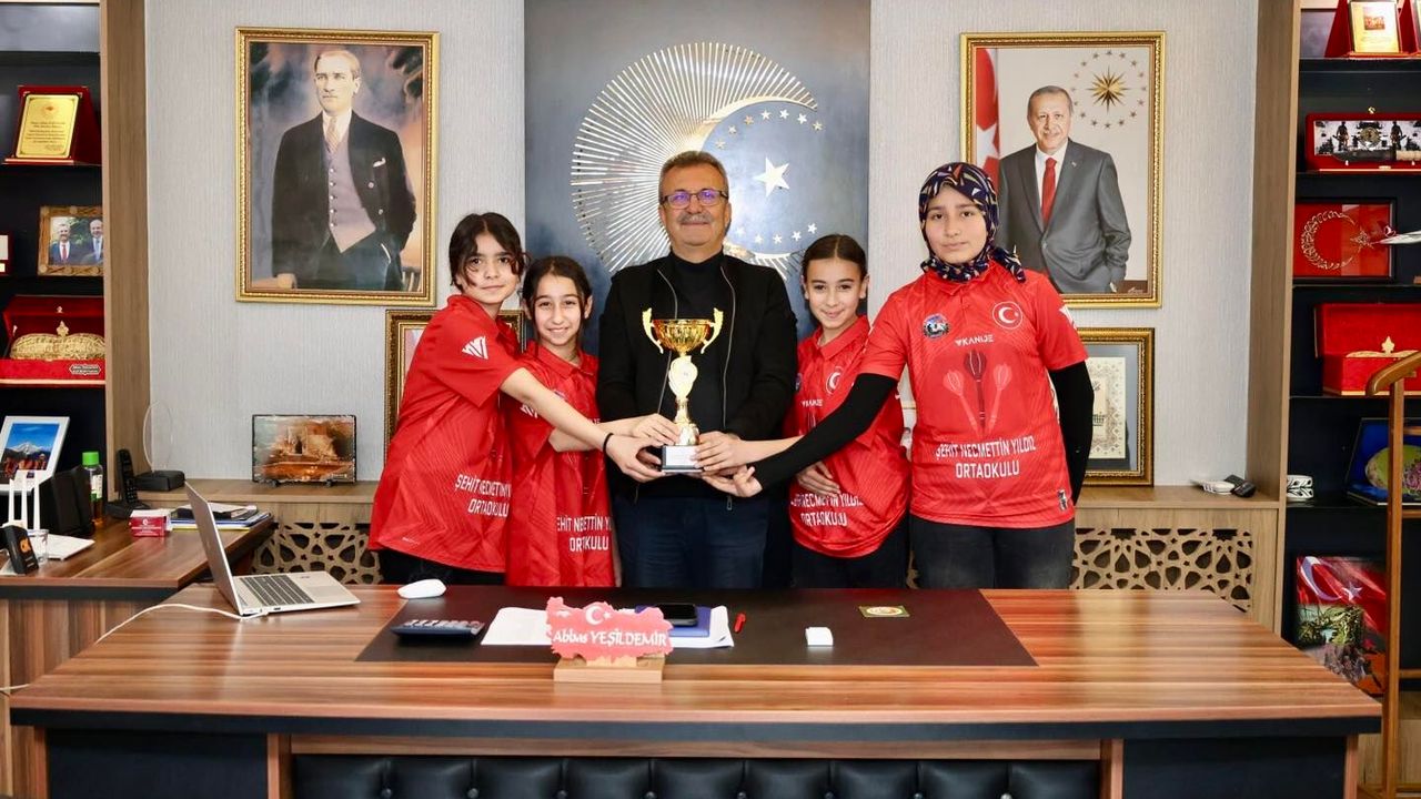 Ellek Şehit Necmettin Yıldız Ortaokulu öğrencileri, dart turnuvasında elde ettikleri il birinciliğiyle büyük bir başarıya imza attı. Belediye Başkanı Abbas Yeşildemir, şampiyon öğrencileri belediyede ağırlayarak başarılarını kutladı.