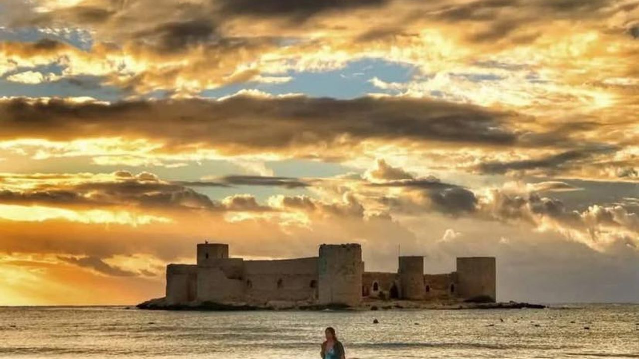 Akdeniz’in en büyüleyici manzaralarından biri olan Kızkalesi, gün batımında ortaya çıkan altın tonlarındaki görüntüsüyle adeta bir tabloyu andırdı. Erdemli ilçesine bağlı Kızkalesi Mahallesi’nde çekilen bu fotoğraf, hem doğanın hem de tarihin mükemmel uyumunu yansıtıyor.