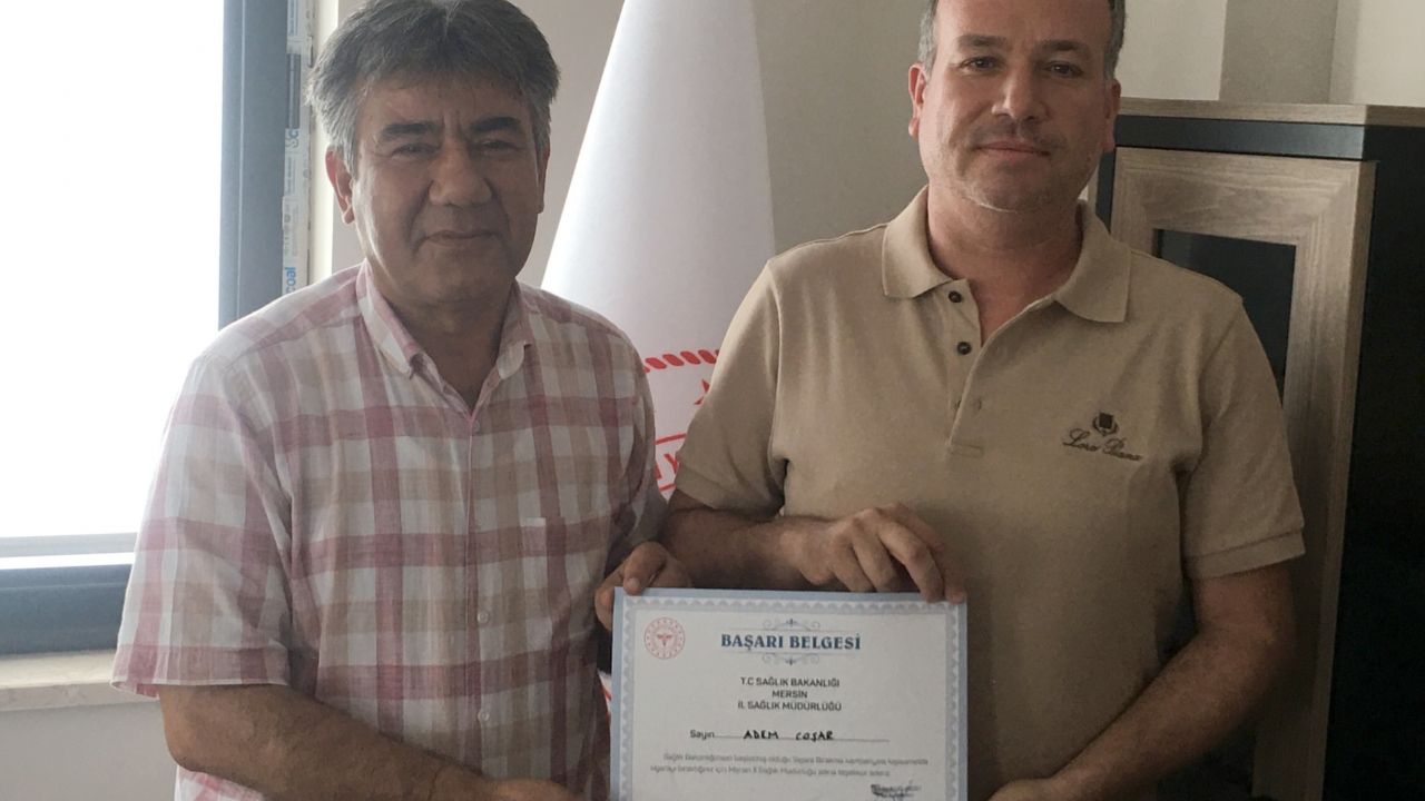 MERSİN (AA) - Mersin'in Erdemli ilçesinde sigarayı bırakan 2 kamu personeline başarı belgesi takdim edildi.