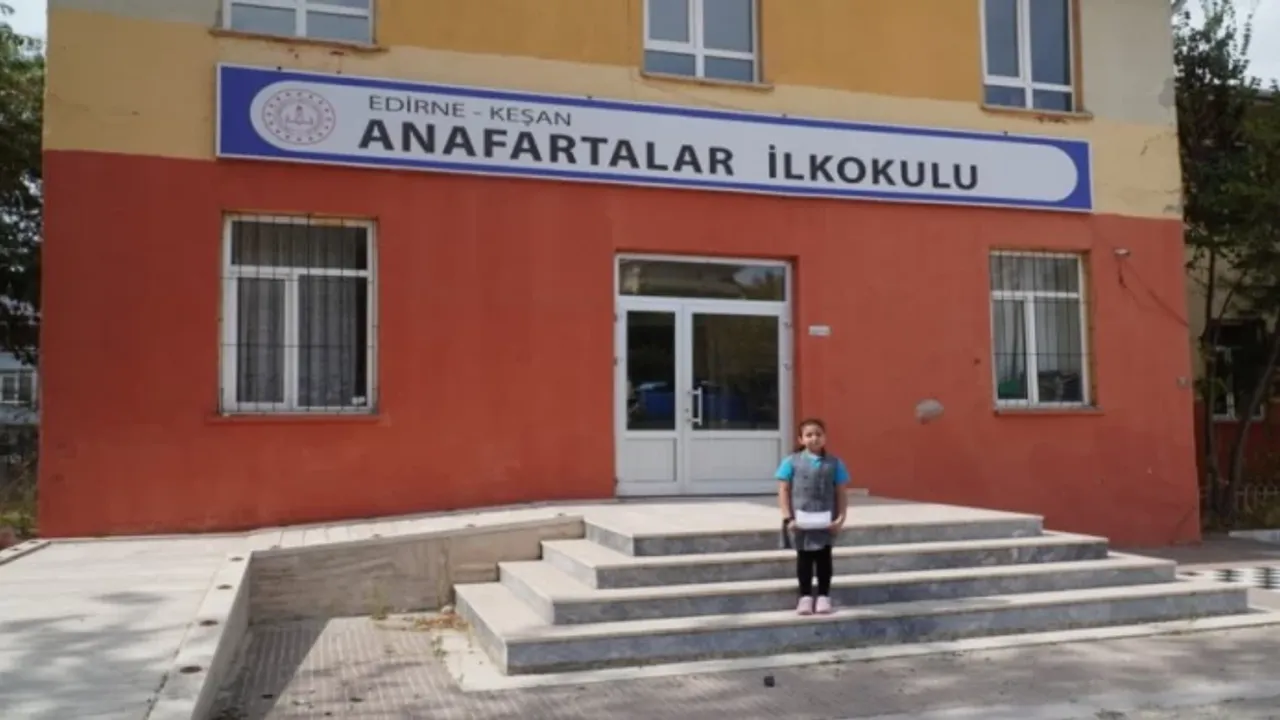 Edirne Keşan'da 2023 Mart ayı başında risk analizi raporuna göre boşaltılan Anafartalar İlkokulu öğrencisi Eylül Çapraz, eski okulunun önünde yetkililere seslenerek okulunu geri istediğini söyledi.