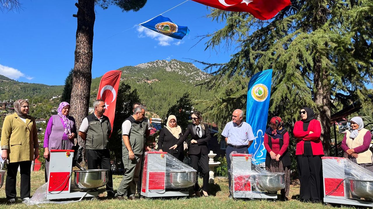Törende 9 mahalledeki 13 haneye hamur yoğurma, üzüm ve nar sıkma ile çapa makineleri verildi.