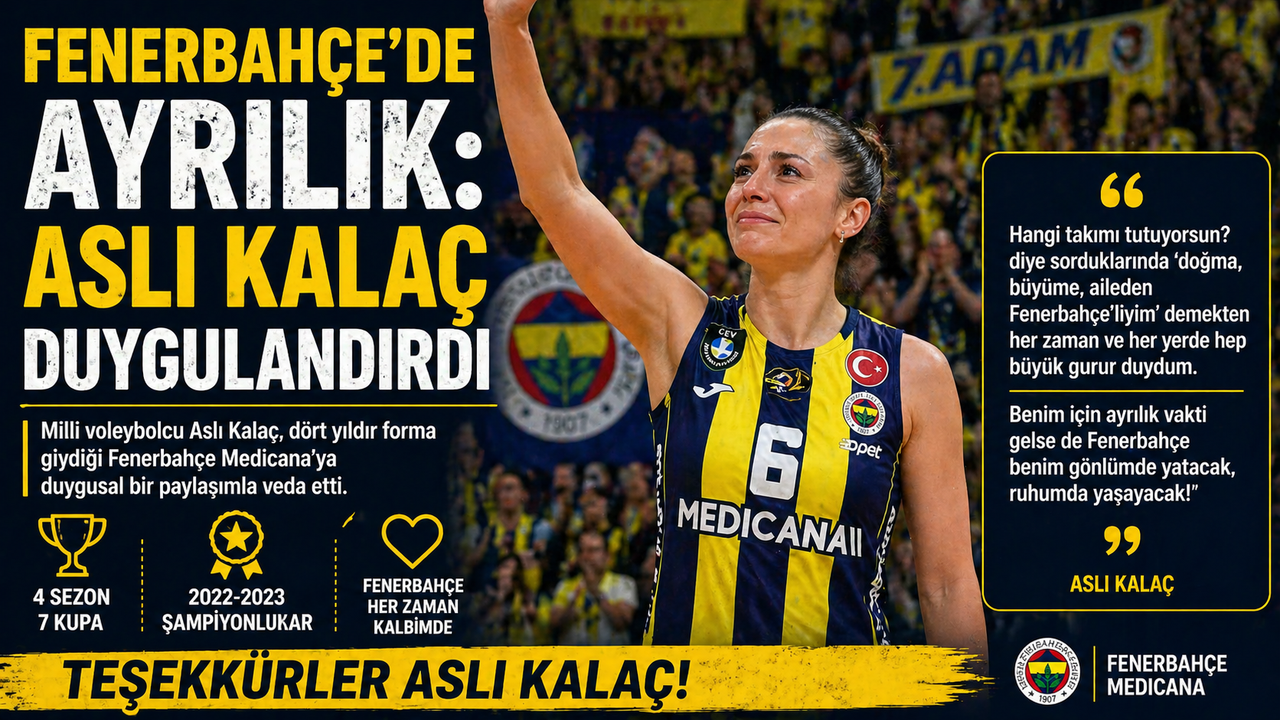 Türk voleybolunun önemli isimlerinden biri olan milli sporcu Aslı Kalaç, dört sezondur formasını giydiği Fenerbahçe Medicana’ya duygusal bir mesajla veda etti. Sarı-lacivertli ekipte önemli başarılara imza atan tecrübeli orta oyuncunun ayrılığı, hem camiada hem de taraftarlar arasında büyük yankı uyandırdı.