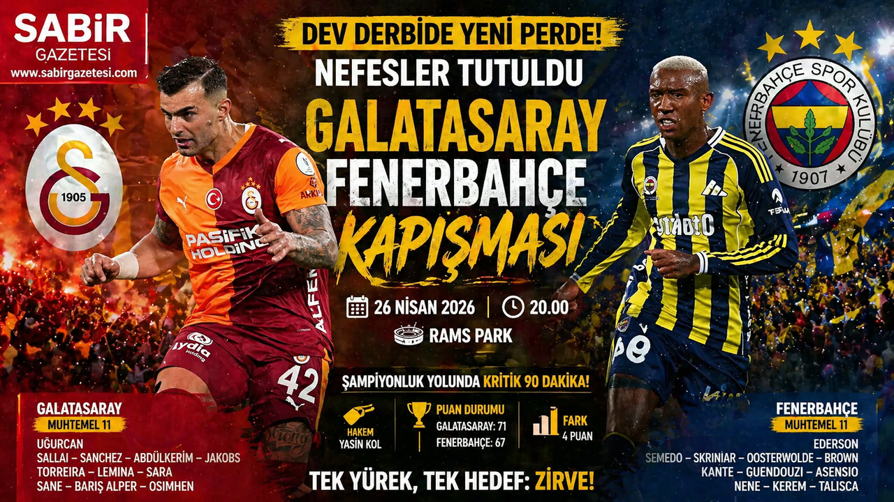 Trendyol Süper Lig’de şampiyonluk yarışını doğrudan etkileyecek dev karşılaşma öncesi futbolseverler ekran başına kilitlendi. Lider Galatasaray ile en yakın takipçisi Fenerbahçe, kritik derbide kozlarını paylaşmaya hazırlanıyor.