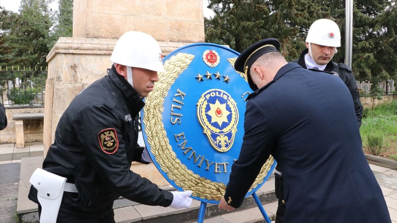 Kilis'teki şehitlikte yapılan törende saygı duruşunda bulunuldu, İstiklal Marşı okundu.