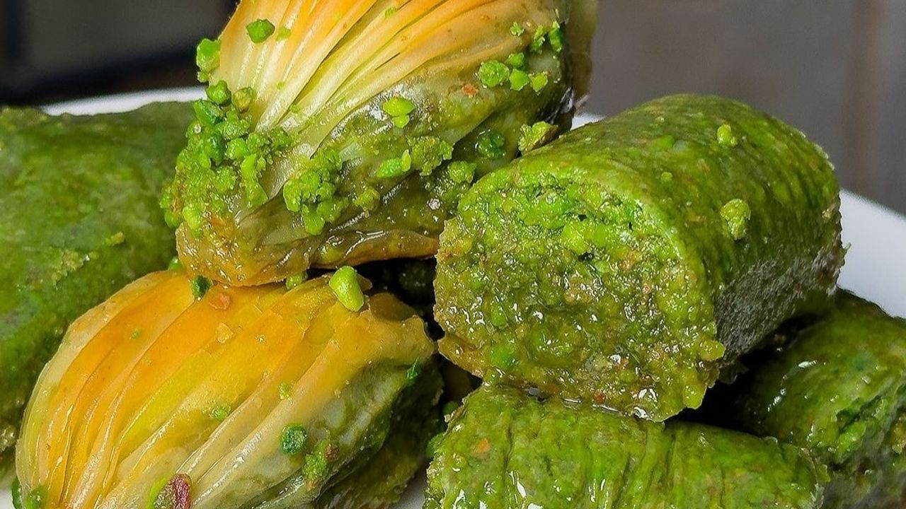 Dünyaca ünlü Gaziantep baklavası, ustalarının elinde yine göz alıcı bir lezzete dönüştü. Kentteki baklava atölyelerinde hazırlanan bol fıstıklı şöbiyet ve sarma baklava çeşitleri, hem rengi hem de parlak dokusuyla iştah kabarttı. Antep fıstığının yoğun kullanımı ve ustalık, baklavayı dünya çapında öne çıkarıyor.